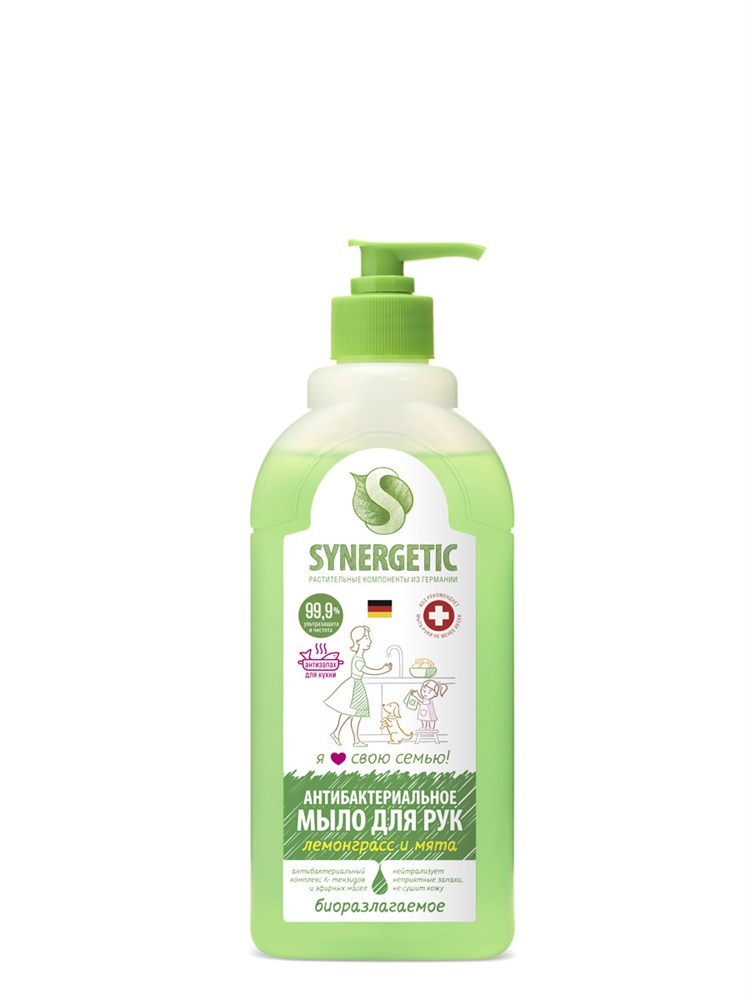 SYNERGETIC ЖИДКОЕ МЫЛО АНТИЗАПАХ Лемонграсс и мята, чистота и ультразащита 99,9%, флакон 0,5лВопросы по товару