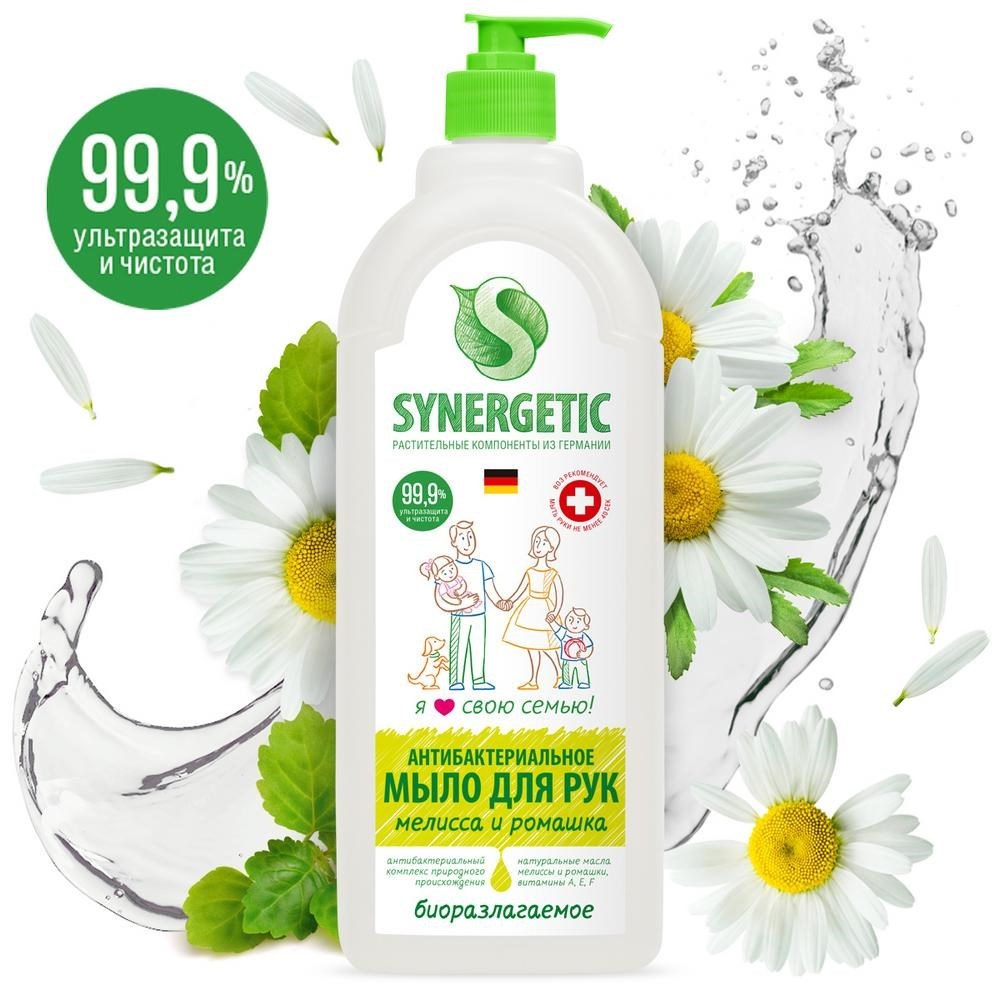 SYNERGETIC ЖИДКОЕ МЫЛО Мелисса и ромашка, чистота и ультразащита 99,9%, флакон 0,5лВопросы по товару