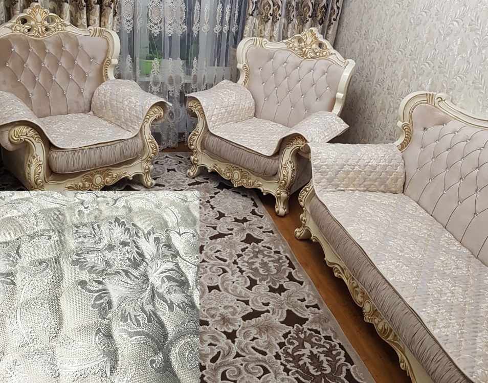 Набор накидок состоит из 3-х изделий 90х160 см - 2 шт. 90х210 см - 1 шт. Материал: Лен-жаккард Изнаночная сторона имеет силиконовые вкрапления, не скользит. Можно использовать как: Комплект покрывал д... Показать описаниеля дивана и двух кресел Набор накидок для дивана, кресла и еще мягкий коврик. Комплект дивандек для углового дивана и кресла Имеет противоскользящее покрытие с обратной стороны, что позволяет легко использовать, как покрывала на кожаный диван. Шикарный Жаккардовый рисунок из натурального материала лен, накидки на диван или кресла или угловой диван отлично подходят к любому интерьеру. Материал очень прочный и износостойкий. Можно стирать в стиральной машине. Купить жаккардовые накидки на мягкую мебель по самой выгодной цене в Москве