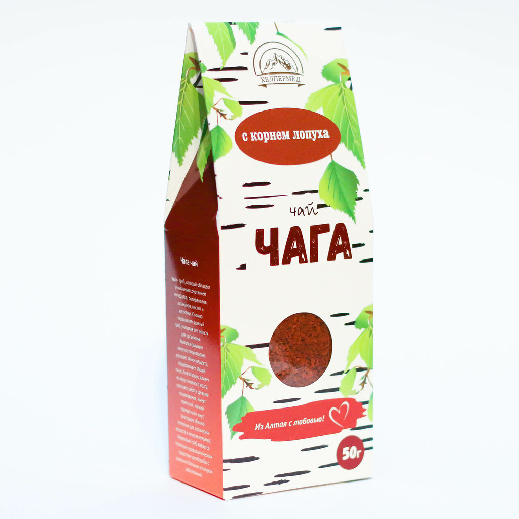Березовая чага является настоящим чудом природы. Гриб вырастает из маленькой споры до больших размеров и содержит уникальный комплекс полезных веществ, получаемых от дерева. Издревле чагу использовали... Показать описание для профилактики различных заболеваний. Она оказывает антисептическое действие, уничтожает микробы и вирусы. Чага применяется для предотвращения новообразований любой локализации, так как задерживает рост клеток. В состав гриба входят стеарины, которые сокращают уровень холестерина и предупреждают развитие атеросклероза, также чагу активно применяют с профилактической целью, в том числе для укрепления иммунитета, предотвращения сердечно-сосудистых заболеваний, и при проявлении хронической усталости. Корень лопуха – богатый источник инулина. Этот полисахарид служит питательной средой для микрофлоры толстого кишечника, которая вырабатывает витамин B12 и участвует в процессах иммунной защиты нашего организма. Кроме того, корень лопуха содержит: - кофейную кислоту, обладающую противовоспалительным и антиоксидантным действием; - фитостерины, снижающие проявления ПМС и менопаузы; - дубильные вещества, которые оказывают мягкий слабительный эффект и подавляют воспаления в желудочно-кишечном тракте; - эфирные масла, благодаря которым корень лопуха оказывает жаропонижающее, потогонное и бактерицидное действие. Состав: чага березовая, корень лопуха. Пищевая ценность в 100г продукта: белки 2,2г, жиры 0,7г, углеводы 1,4г. Энергетическая ценность: 23ккал/100г. Способ заваривания: возьмите 1ч.л., насыпьте в чашку или чайничек 200мл, залейте кипятком и дайте настояться 15-20 минут. Противопоказания: индивидуальная непереносимость компонента. Условия хранения: хранить при температуре не ниже 1°C и не выше 25°C в сухом, защищенном от попадания влаги и прямых солнечных лучей месте. Срок годности: 24 месяца.