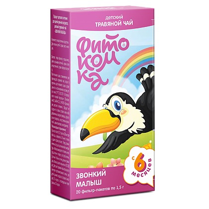 Детский травяной чай «Здоровый малыш» оказывает противовоспалительное, жаропонижающее, отхаркивающее действие. Употребление травяного чая поможет легче перенести простудное заболевание – снижает выраж... Показать описаниеенность симптомов интоксикации, уменьшает риск развития осложнений. Фиточай подходит для комплексной терапии ОРВИ и гриппа, может применяться для профилактики в сезон простуд. Продукт не содержит в своем составе каких-либо добавленных сахаров (глюкозы, фруктозы или сахарозы), искусственных красителей, ароматизаторов, консервантов. Состав: плоды фенхеля, плоды аниса, цветки ромашки аптечной, корни алтея лекарственного, трава чабреца ползучего. Рекомендации по применению: 1 фильтр-пакет (1,5 г) залить 150-200 мл горячей воды, заваривать 3-5 минут, отжать и удалить фильтр-пакет. Перед применением остудить до комнатной температуры. Чай рекомендуется готовить непосредственно перед употреблением. Суточный объем чая не должен превышать объема одного кормления (150-200 мл). Детский травяной чай используют в качестве дополнительного питья для детей раннего возраста (старше 6 месяцев) 2-3 недели, с последующим перерывом в 2-3 недели. Противопоказания: индивидуальная непереносимость компонентов продукта. Продукция прошла радиологический контроль! Масса нетто: 30 г (20 фильтр-пакетов по 1,5 г). Срок годности: 24 месяца. Детям с 6 месяцев!