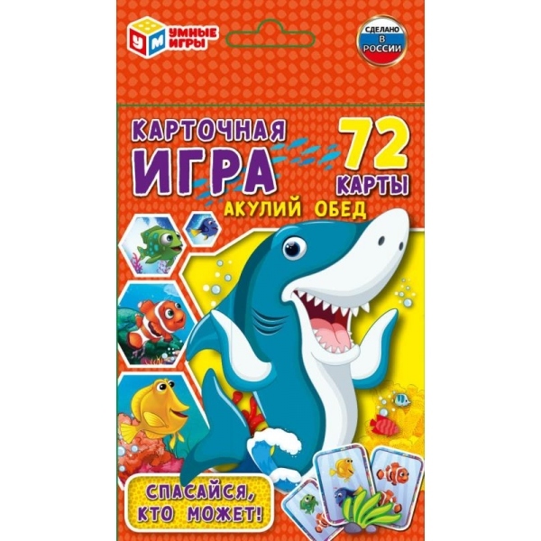 Акулий обед. Карточная игра. Коробка с европодвесом. Карточки 72 шт. 85х62мм. Умные игры в кор.40шт Вопросы по товару