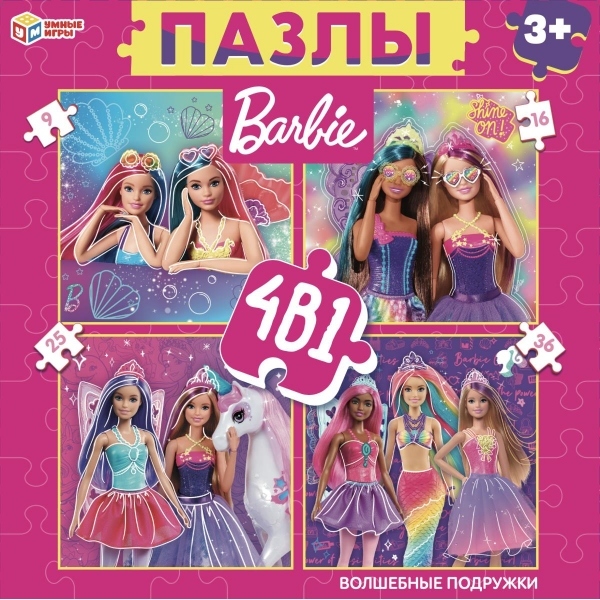 Барби. Волшебные подружки.Набор пазлов в коробке 4 в 1. 175х175х50 мм. Умные игры в кор.12шт Вопросы по товару