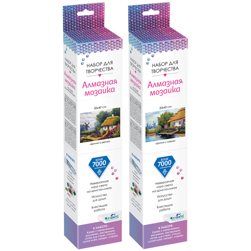 Алмазная мозаика Алмазные узоры. Домик в цветах/Домик у озера, 30*40см, ассорти, европодвес, 6127