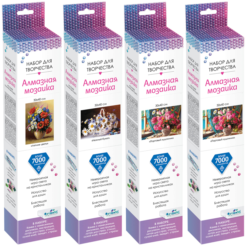 Алмазная мозаика Алмазные узоры. Весенний букет/Огненные маки/Краски осени/Летний бриз, 30*30см, ассорти, европодвес, 6090