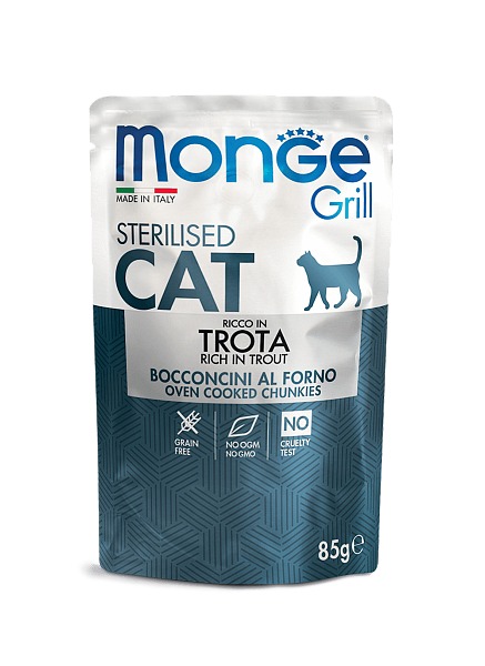 * Monge Cat Grill Pouch паучи для стерилизованных кошек итальянская форель 85 г