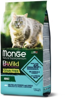 Monge Cat BWild GRAIN FREE паучи из трески с креветками и овощами для взрослых кошек 85г Вопросы по товару