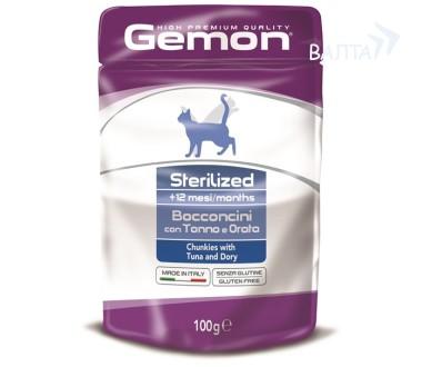 Gemon Cat Pouch Sterilised паучи для стерилизованных кошек кусочки тунца с рыбой дори 100 г
