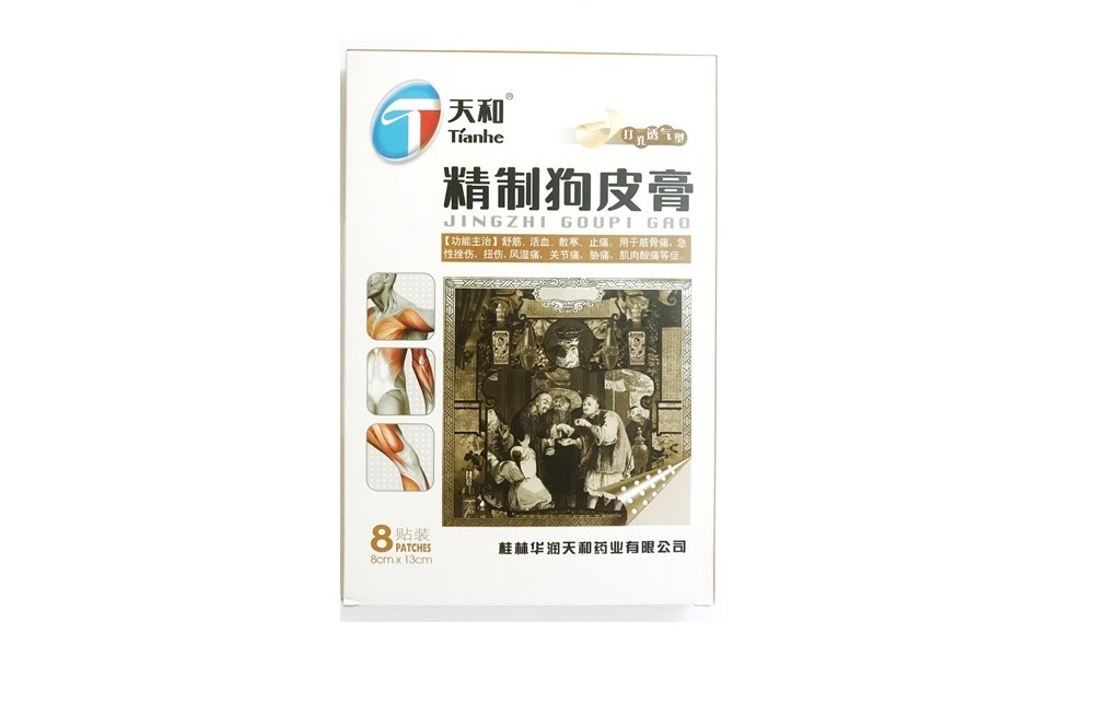 Пластырь TianHe JingZhi GouPi Gao (Собачья кожа), 8 шт. (1 коробка, 2 упаковки по 4 пластины (8*13 см))
