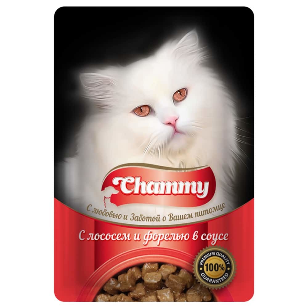 Корм консервированный для кошек "Chammy" с лососем и форелью в соусе, 85г АГВопросы по товару