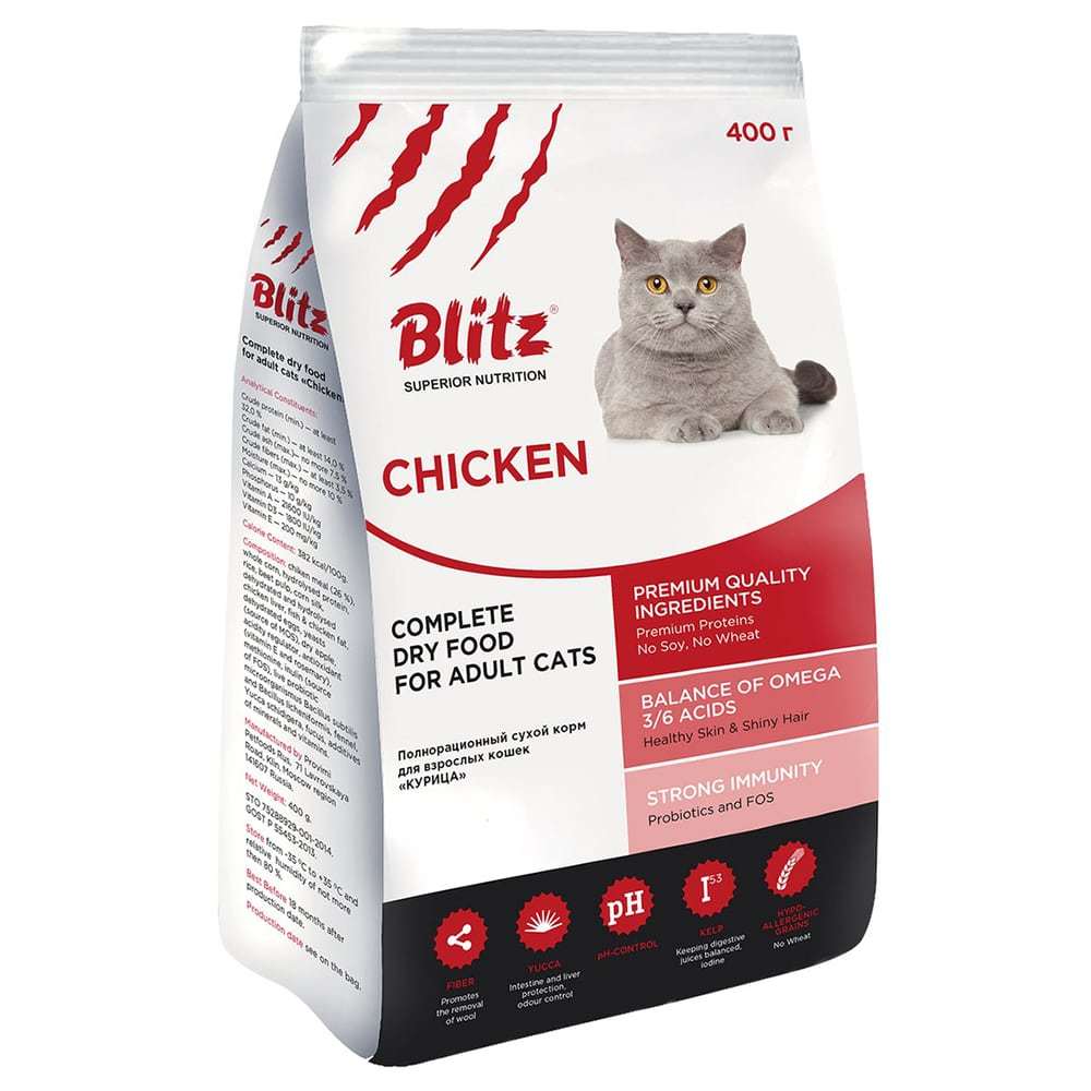 Полнорационный сухой корм Blitz For Adult Cats Chicken создан для взрослых кошек всех пород на основе одного источника животного белка. Содержит дегидрированное мясо курицы (26%)