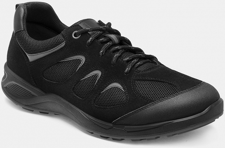 Больше картинок (информации) и таблица размеров на странице. Надежные и теплые демисезонные мужские кроссовки не обладают излишним объемом и не делают образ громоздким. Верх обуви из натуральной кожи разбавлен текстильными вставками, что не только придает модели привлекательный внешний вид, но и обеспечивает удобство и комфорт при носке. Эргономичная шнуровка и прочная подошва усиливают этот эффект. Литьевой способ крепления исключает проникновение влаги и позволяет носить обувь в ненастную погоду. Внутренний материал: ПУ, Кожа. Материал верха: Натуральная кожа. Пол: мужской. Верх: натуральная кожа. Внутри и стелька: синтетика. Высота каблука: без каблука. Цвет: черный. Полнота: 6 (Стандарт)