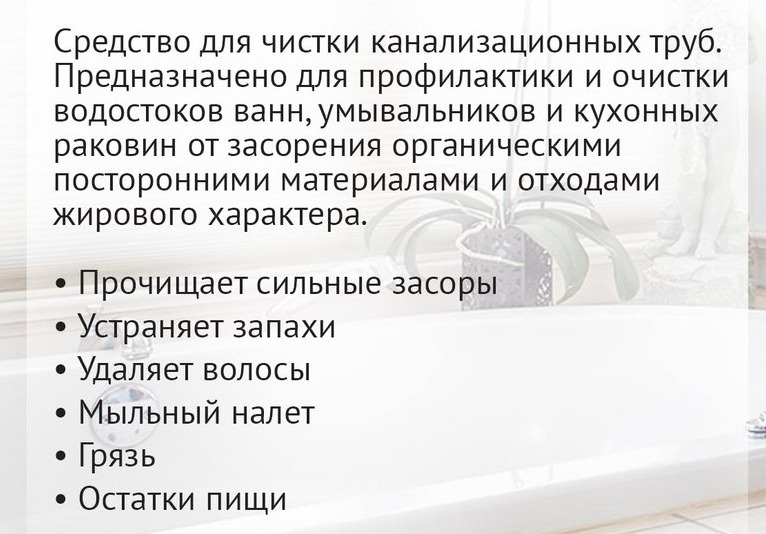 Средство предназначено для прочистки сливных отверстий от заторов, а также для очистки труб, раковин, ванн, унитазов и т.д. от окиси, ржавчины, грязи. Прочищает, дезинфицирует, устраняет неприятные за... Показать описаниепахи. Эффективно действует в холодной воде. Не причиняет вреда эмалям и полимерным материалам. Преимущества: - уничтожает болезнетворные микроорганизмы; - устраняет неприятные запахи; - практичная одноразовая упаковка.