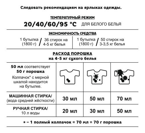 Предназначен для стирки цветных изделий из хлопчатобумажных, льняных, синтетических тканей и тканей из смешанных волокон, кроме шерсти и шелка. Применяется для машинной и ручной стирки в воде любой же... Показать описаниесткости. Имеет деликатный аромат, надолго сохраняет свежесть белья, заботится о ткани. Благодаря наличию энзимов (биологически активных веществ) удаляет стойкие загрязнения (пятна от травы, пота, крови, вина и жира), не повреждая структуру ткани.