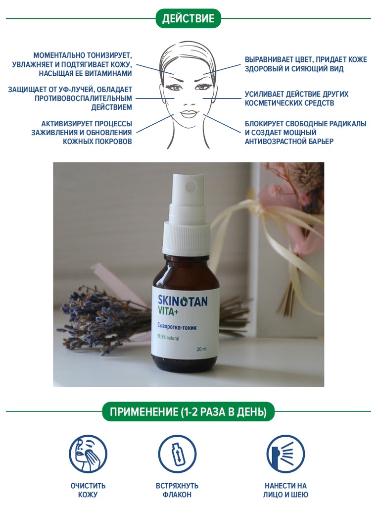 "SKINOTAN VITA+" Уходовый комплекс Сыворотка-тоник 20 мл + Крем-молочко 25 млВопросы по товару