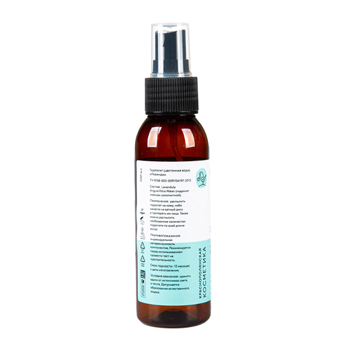 Гидролат сделан из лаванды, выращенной и собранной на лавандовой ферме Краснополянской косметики. Косметические свойства: Моментально увлажняет и тонизирует; освежает и успокаивает кожу; эффективно бо... Показать описаниерется с покраснением, воспалениями, раздражением угревой сыпью; обладает антисептическими и бактерицидными свойствами; ускоряет регенерацию тканей; подтягивает; замедляет процессы старения кожи; улучшает цвет лица. Косметические свойства для волос: Укрепляет корни волос; снижает жирность; придает блеск волосам. ОЗНАКОМИТЬСЯ СО СПОСОБОМ ПРИМЕНЕНИЯ И ОТЗЫВАМИ МОЖНО ПО ЭТОЙ ССЫЛКЕ