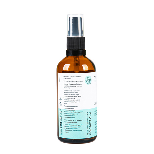 Гидролат Эвкалипт (цветочная вода) продукт паровой дистилляции (выпаривания) листьев эвкалипта. Собранный конденсат пара - это целебная жидкость, которая содержит водорастворимые полезные компоненты р... Показать описаниеастения. Для ухода за комбинированной, жирной кожей. Косметические свойства: мощное антибактериальное и противовоспалительное действие нормализация работы сальных желез и устранение угревой сыпи отличный антиоксидант- предупреждает преждевременное старение выравнивает цвет лица восстанавливает поврежденные участки кожи, после ожогов или обветривания эффективен после загара распылять по поверхности кожи оказывает антицеллюлитное действие снимает зуд после укусов насекомых Косметические свойства для волос помогает в борьбе с перхотью укрепляют волосы ОЗНАКОМИТЬСЯ СО СПОСОБОМ ПРИМЕНЕНИЯ И ОТЗЫВАМИ МОЖНО ПО ЭТОЙ ССЫЛКЕ
