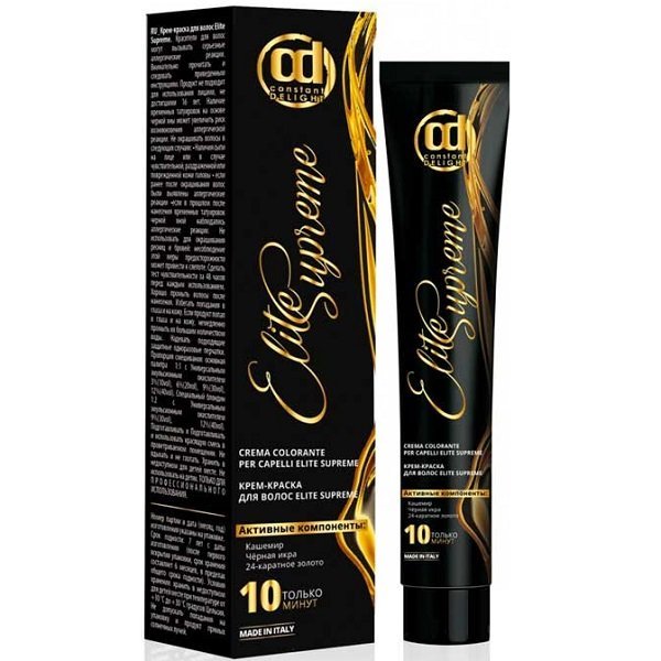 Окислитель 3% приобретается отдельно. Премиальный краситель с экзотическими ингредиентами: черная икра, кашемир и 24-х каратное золото. Обеспечивает: стойкое окрашивание за 10 минут 100% покрытие седи... Показать описаниены окрашивание до 4 тонов светлее ухаживающая формула из кашемира, черной икры, золота 62 модных оттенка совершенный продукт сегмента люкс Применение: смешивается с эмульсионным окислителем Elite Supreme в пропорции 1:1 для основной палитры, для суперосветляющей серии - 1:2 в неметаллической емкости до однородной массы. Первичное окрашивание: приготовленную смесь равномерно нанести на сухие, не вымытые волосы, на длину и концы волос, отступив от корней на 2-3 см, оставить на 3 минуты. Затем приготовить свежую смесь и нанести на корни, выдержать 10 минут. Вторичное окрашивание: желательно производить на сухие, не вымытые волос. Приготовленную смесь нанести на прикорневую зону, выдержать 10 минут. При необходимости выполнить окрашивание/тонирование по полотну волос. Завершающая обработка: по истечении времени выдержки аккуратно эмульгировать красящую смесь с водой в течение 5 минут, тщательно вымыть волосы теплой водойй с использованием Шампуня Защита цвета и нанести Бальзам Стабилизатор цвета после окрашивания на 3-5 минут, смыть теплой водой. Корректоры применяются: для усиления (уплотнения) желаемого оттенка, добавляется до 30% от массы основного тона с учетом эмульсионного окислителя. для нейтрализации (устранения) нежелательного оттенка, добавляется по правилу Одиннадцати без учета эмульсионного окислителя. как самостоятельный краситель, применяется на предварительно осветленных, обесцвеченных волосах. Нейтральный краситель используется для рассветления оттенков крем-краски основной группы по глубине тона и цветовому направлению. Например, для получения оттенка на 1 тон светлее: взять 30гр выбранного оттенка + 10гр нейтрального корректора.