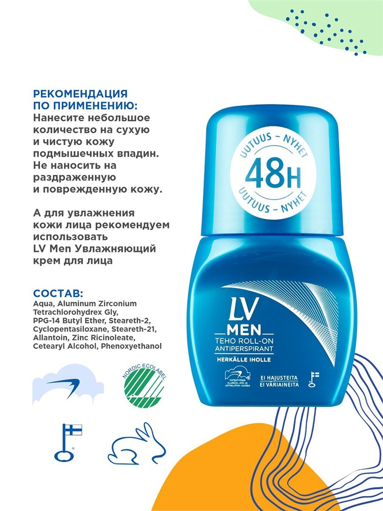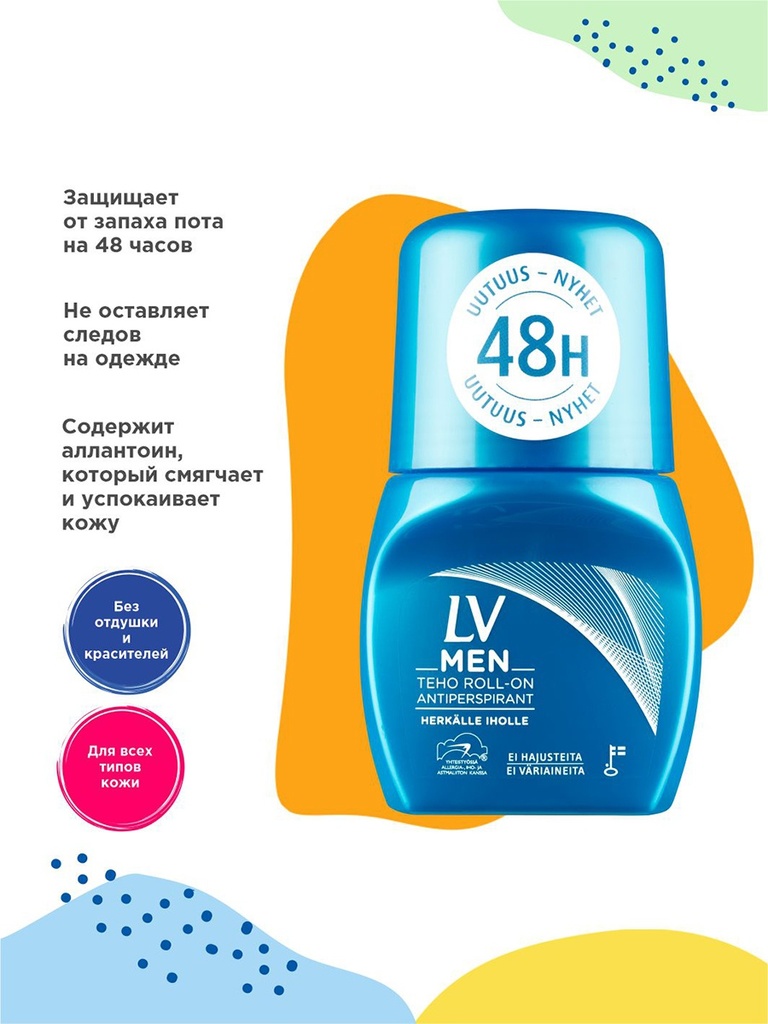 LV дезодорант шариковый – активный антиперспирант 24 часа, абсолютно гипоаллергенный продукт, не содержит отдушек, красителей. Из-за отсутствия запаха подходит для использования мужчинам и женщинам. L... Показать описаниеV дезодорант шариковый поможет сохранить свежесть в течении всего дня. LV дезодорант шариковый специально разработан для людей, склонных к аллергическим реакциям, с высокой чувствительностью кожи. Нежный состав, разработанный финнами, не раздражает даже самую чувствительную кожу. Дезодорант быстро высыхает, не оставляет следов на одежде. Так как LV дезодорант шариковый абсолютно безопасен по всем европейским стандартам его можно использовать даже людям, не страдающим от аллергических проявлений, этот дезодорант не навредит, а наоборот, как средство профилактики будет очень полезным. Без красителей, ароматизаторов, гипоаллергенно. LV дезодорант шариковый разработан совместно с «Союзом против астмы и аллергии Финляндии», состав одобрен «Скандинавской экологической ассоциацией», а так же протестирован Российской Кафедрой «Аллергологии и клинической фармакологии» и «Обществом детских аллергологов Санкт-Петербурга». Вся продукция LV произведена в Финляндии. Состав: Aqua, Aluminium, Chlorihydrate, Cetyl Alcohol, Ceteareth-20, Decil Oleate, Glyceryl,Stearate, C 12-13 Alkyl Lactate, Allantoin.