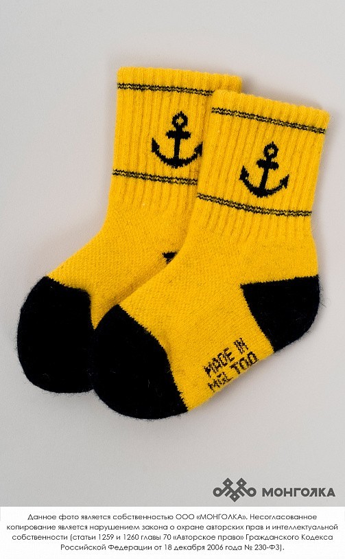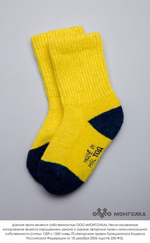 Носки из натуральной шерсти сохранят ножки ребёнка в тепле и сухости в любую погоду. Носки на 70% состоят из натуральной шерсти монгольской овцы, благодаря чему отводят лишнюю влагу и обладают износос... Показать описаниетойкостью и долгое время будут дарить ребенку комфорт. Детские шерстяные носки не спадают с ножки ребёнка, ведь они плотно облегают стопу и хорошо фиксируются, а мягкая резинка не сдавливает ногу и не стесняет движение. Носки из овечьей шерсти не вызывают раздражения, они приятные на ощупь и совсем не колются, их можно надевать на тонкий носок и без него. Теплые детские носки подойдут как для мальчиков, так и для девочек и станут приятным подарком для дочки или сына. В нашем ассортименте вы найдете еще больше товаров из натуральной шерсти, доставленных напрямую из Монголии. * Производитель: Монголия, TOD * Состав: 70% шерсть, 30% вискоза * Цвет: жёлтый с синим * Укрепленная стопа * Размерный ряд: Носки Длина подошвы Российские размеры 1 р-р 10-12 см 12 р-р 2 р-р 12-14 см 14 р-р 3 р-р 14-16 см 16 р-р 4 р-р 16-18 см 18 р-р 5 р-р 18-20 см 20 р-р