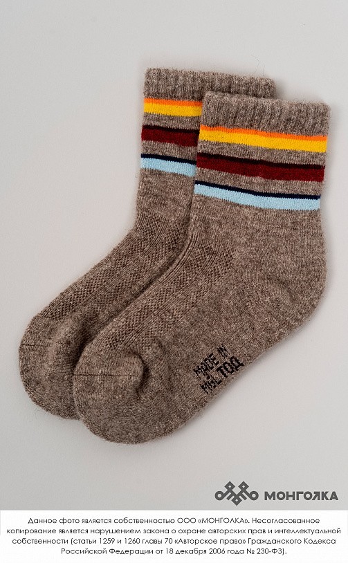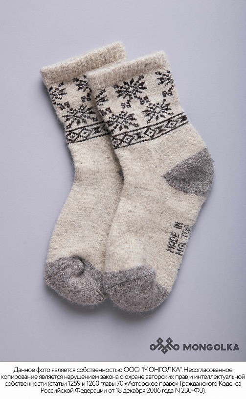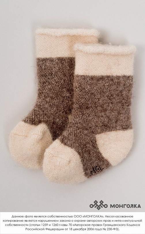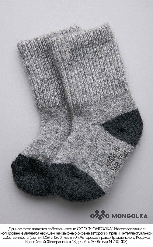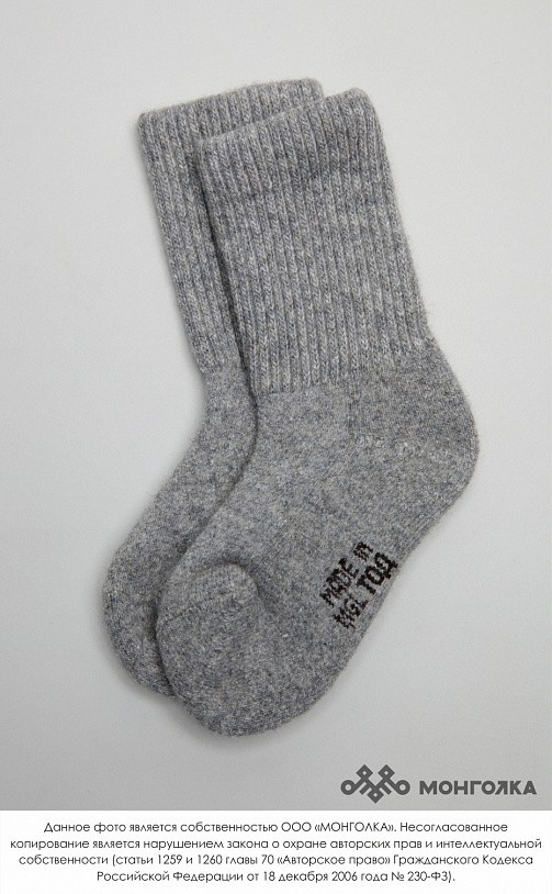 Носки из 100% шерсти монгольской овцы сохранят ножки ребёнка в тепле и сухости в любую погоду. Благодаря свойствам натуральной шерсти носки отводят лишнюю влагу и обладают износостойкостью, поэтому до... Показать описаниелгое время будут дарить комфорт ребёнку. Носки из овечьей шерсти не вызывают раздражения, они приятные на ощупь и совсем не колются, их можно надевать на тонкий носок и без него. Теплые носки не спадают с ножки ребёнка, ведь они плотно облегают стопу, хорошо фиксируются, а мягкая резинка не сдавливает ногу и не стесняет движение. Детские шерстяные носки подойдут как для мальчиков, так и для девочек и станут приятным подарком для дочки или сына. В нашем ассортименте вы найдете еще больше товаров из натуральной шерсти, доставленных напрямую из Монголии. Носки детские из 100% монгольской шерсти