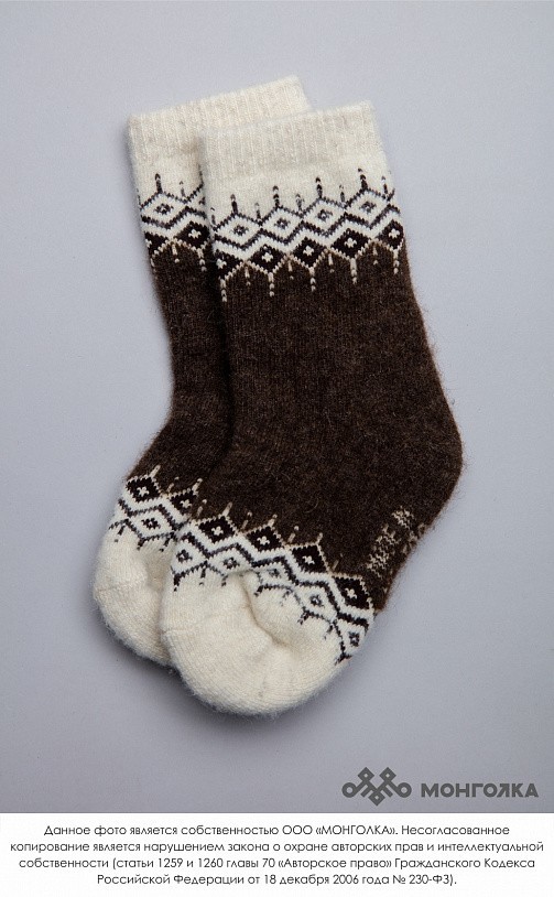 Носки из натуральной шерсти, в составе 100% шерсть. Тёплые уютные изделия из монгольской шерсти, сохранят ножки Вашего ребенка в тепле и сухости в любое время года, подойдут как для мальчиков, так и д... Показать описаниеля девочек. Носки детские из 100% монгольской шерсти - напрямую от производителя. * Производитель: Монголия, TOD * Состав: 100% шерсть * Цвет: шоколадный с рисунком * Укрепленная стопа * Размерный ряд: Носки Длина подошвы Российские размеры 1 р-р 10-12 см 12 р-р 2 р-р 12-14 см 14 р-р 3 р-р 14-16 см 16 р-р 4 р-р 16-18 см 18 р-р 5 р-р 18-20 см 20 р-р