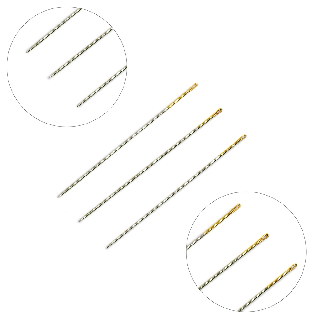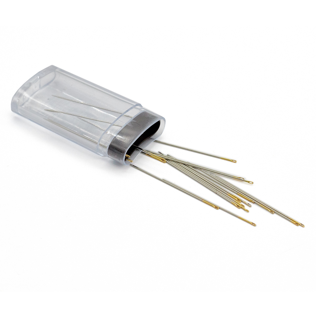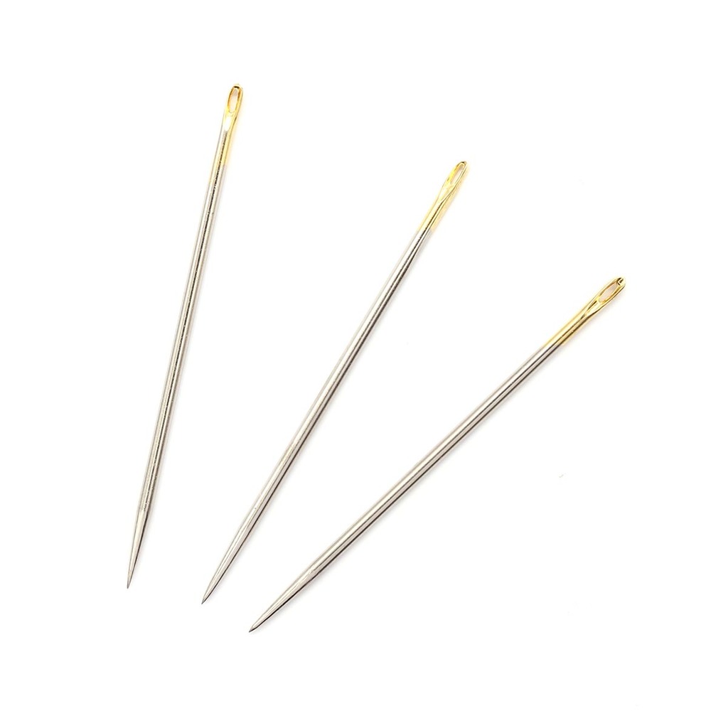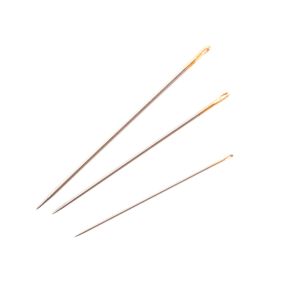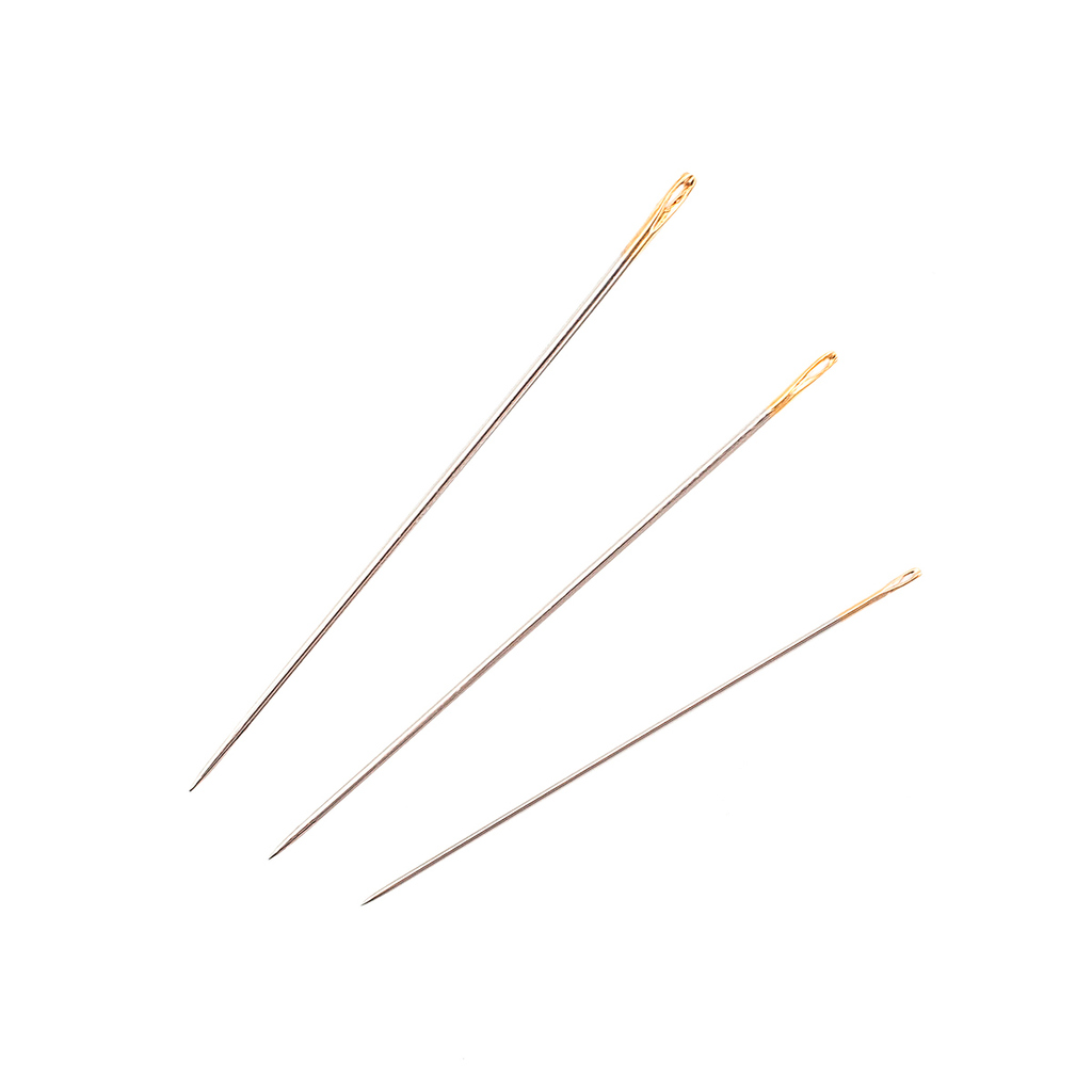 Комплект из 10 тонких острых игл с позолоченными ушками идеально подойдет для наметочных или мелких ремонтных работ. Изготовлены из высокоуглеродистой стали с хромированным покрытием, устойчивы к появ... Показать описаниелению коррозии. При правильном использовании такие иглы прослужат вам долго. Чтобы защитить пальцы от случайного травмирования, при работе с иглами используйте наперсток. Оптимальное место хранения игл – закрытый футляр или игольница с магнитным основанием. Длина игл: 56-42,5 мм Диаметр игл: 1,02-0,53 мм Номер иглы: № 3-9