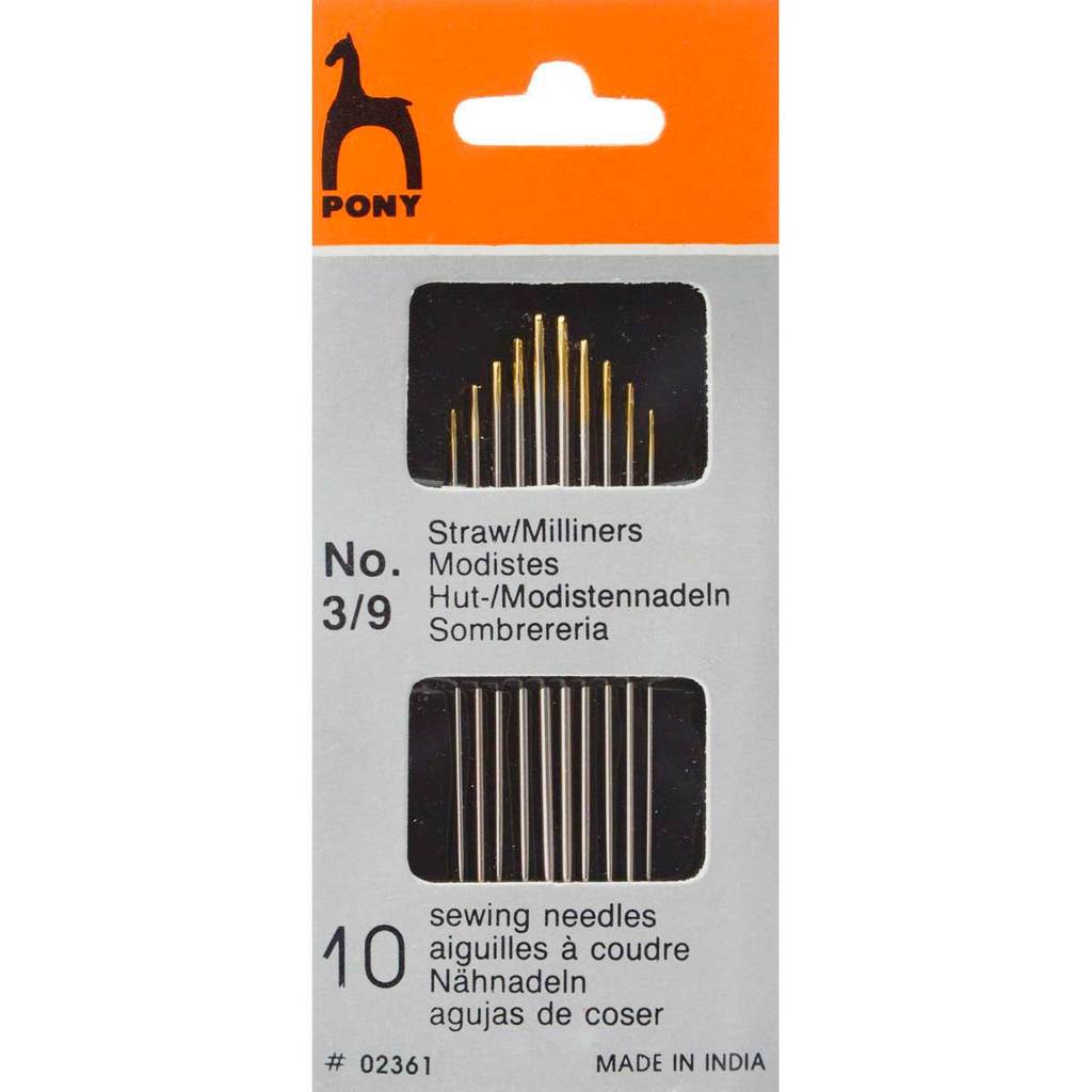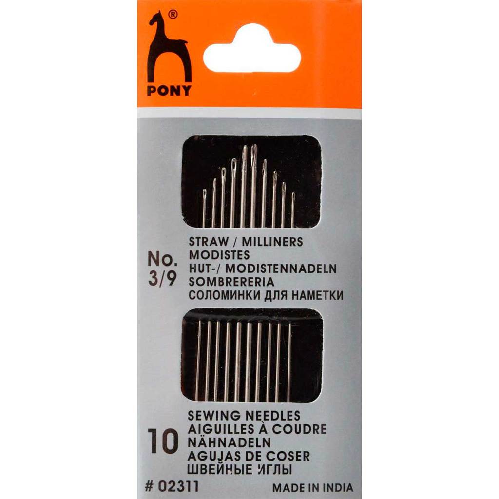 Набор Pony 'Betweens' включает в себя универсальные портновские иглы, подходящие для большинства видов шитья вручную, в том числе для мелкого ремонта и наметки. Изготовлены из высокоуглеродистой стали... Показать описание с хромированным покрытием, устойчивы к появлению коррозии. При правильном использовании такие иглы прослужат вам долго. В комплекте 20 остроконечных игл разного размера. Чтобы защитить пальцы от случайного травмирования, при работе с иглами используйте наперсток. Оптимальное место хранения игл – закрытый футляр или игольница с магнитным основанием. Компания Pony известна во всем мире, ее ценят за широкий ассортимент и высокое качество продукции. Длина игл: 37-27 мм Диаметр игл: 1,02-0,53 мм Номер иглы: № 3-9