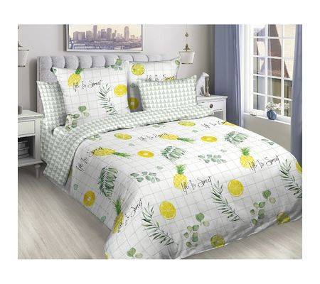 Пододеяльник: 1 шт. - 215 см на 145 см; простыня: 1 шт. - 215 см на 150 см; наволочка: 2 шт. - 70 см на 70 см.