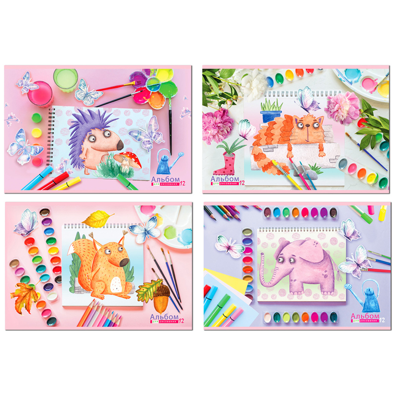 Альбом для рисования 12л., А4, на скрепке BG Веселые зверята, эконом, АР4ск12 9902 Вопросы по товару