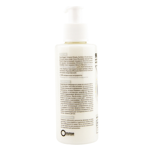 Средство для ежедневного ухода за самыми нежными участками тела обеспечивает оптимальное сочетание очищения и увлажнения. Содержит мягкие компоненты, которые бережно и деликатно очищают, сохраняя есте... Показать описаниественную микрофлору. Молочная кислота поддерживает физиологический кислотно-щелочной баланс. Масла оливы и жожоба, инулин и бетаин в составе питают и смягчают, помогают устранить сухость и дискомфорт. Благотворно влияет на раздраженную и поврежденную кожу. Оставляет после использования ощущение чистоты и комфорта. В целях минимизации аллергических реакций не содержит в составе эфирных масел, отдушек и обладает естественным запахом ингредиентов. Возможна индивидуальная непереносимость компонентов. ОЗНАКОМИТЬСЯ СО СПОСОБОМ ПРИМЕНЕНИЯ И ОТЗЫВАМИ МОЖНО ПО ЭТОЙ ССЫЛКЕ