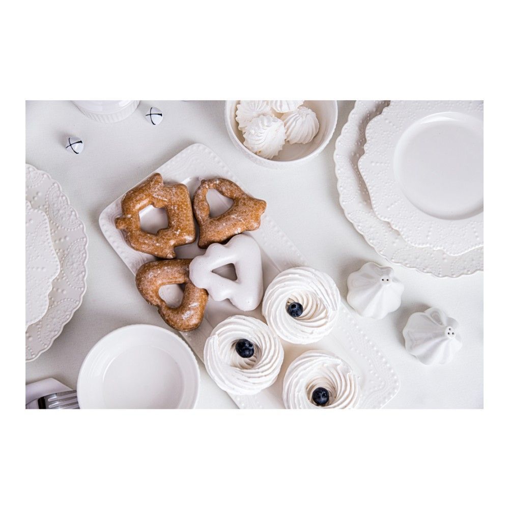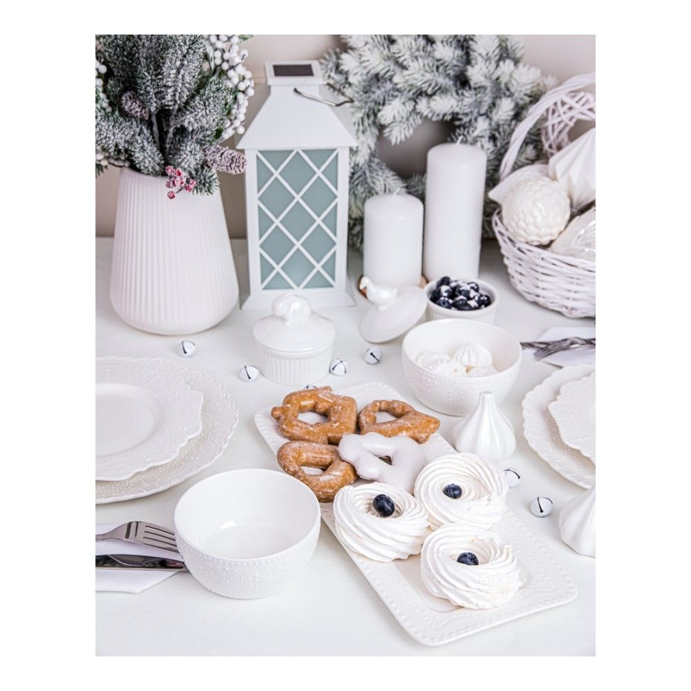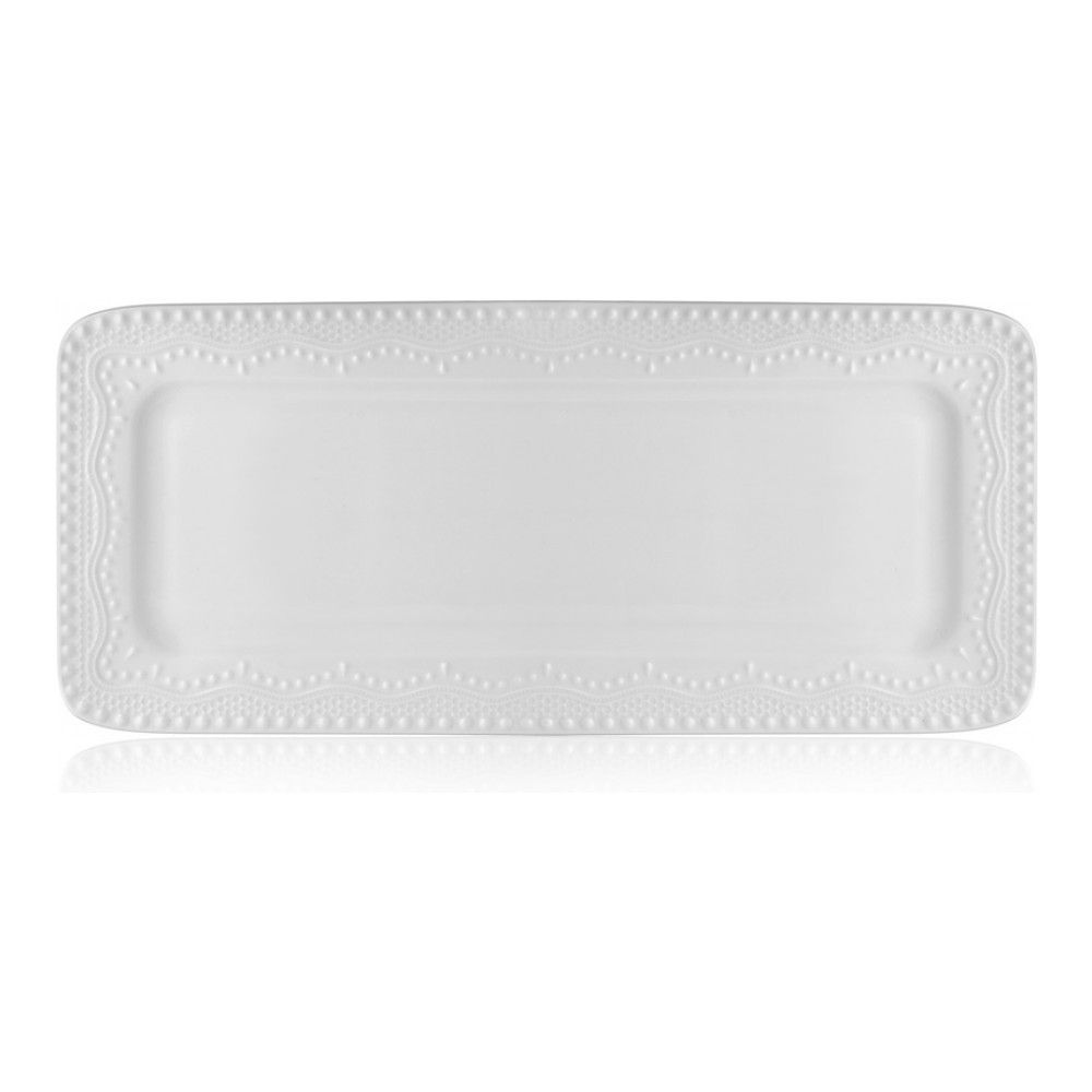 Цвет: белый; габариты: 36,5х16,4х1,5 см; вес: 0.67 кг; материал: фарфор; серия: Vivien. У известного британского бренда с давними традициями Walmer пополнение в линейке изящного столового фарфора. Viv... Показать описаниеien – такая же прекрасная и хрупкая внешне, но невероятно крепкая, как Скарлетт О'Хара, лучшая роль английской актрисы Вивьен Ли. Мягкий молочный цвет посуды напоминает костяной фарфор. Рельефное тиснение имитирует кружево или вязание. Это придает нарядность и одновременно ощущение домашнего уюта. Длина блюда - 36.5 см, длина плоской части - 30 см. Линейка посуды Vivien изготовлена из упрочненного фарфора, который может использоваться как профессиональный в HoReCa. Этот материал отличают:. * Высокая ударопрочность. Это стало возможным с помощью легирующих, то есть добавленных для улучшения свойств, компонентов в состав керамической массы;. * Легкость мытья. Благодаря специальному составу глазури легко мыть даже посуду с присохшей грязью;. * Высокая устойчивость к температурным перепадам. Посуду можно использовать в микроволновой печи, посудомоечной машине, холодильнике и даже духовке. * Высокая ударопрочность благодаря легирующим компонентам в составе керамической массы;. * Разрешено использовать в СВЧ;. * Можно мыть в посудомоечной машине. В коллекцию Walmer Vivien входят круглое и прямоугольное блюдо, формы для запекания, миски разных размеров, тарелки обеденные, суповые и десертные, кружки, чайные и кофейные пары, сахарница, солонка и перечница. Прямоугольные блюда, традиционно, предназначены для несложных закусок или пирожных. Но блюдо Walmer Vivien, конечно же, может использоваться для подачи самых разных кулинарных искушений. Особенно хорошо в такой форме смотрятся квадратные или прямоугольные закуски – например, суши, маленькие канапе и т.д. На этом блюде вы сможете не только сервировать, но и запекать блюда в духовке, форма выдерживает нагревание до 230С. Для запекания блюдо нужно ставить в холодную, а не горячую духовку.