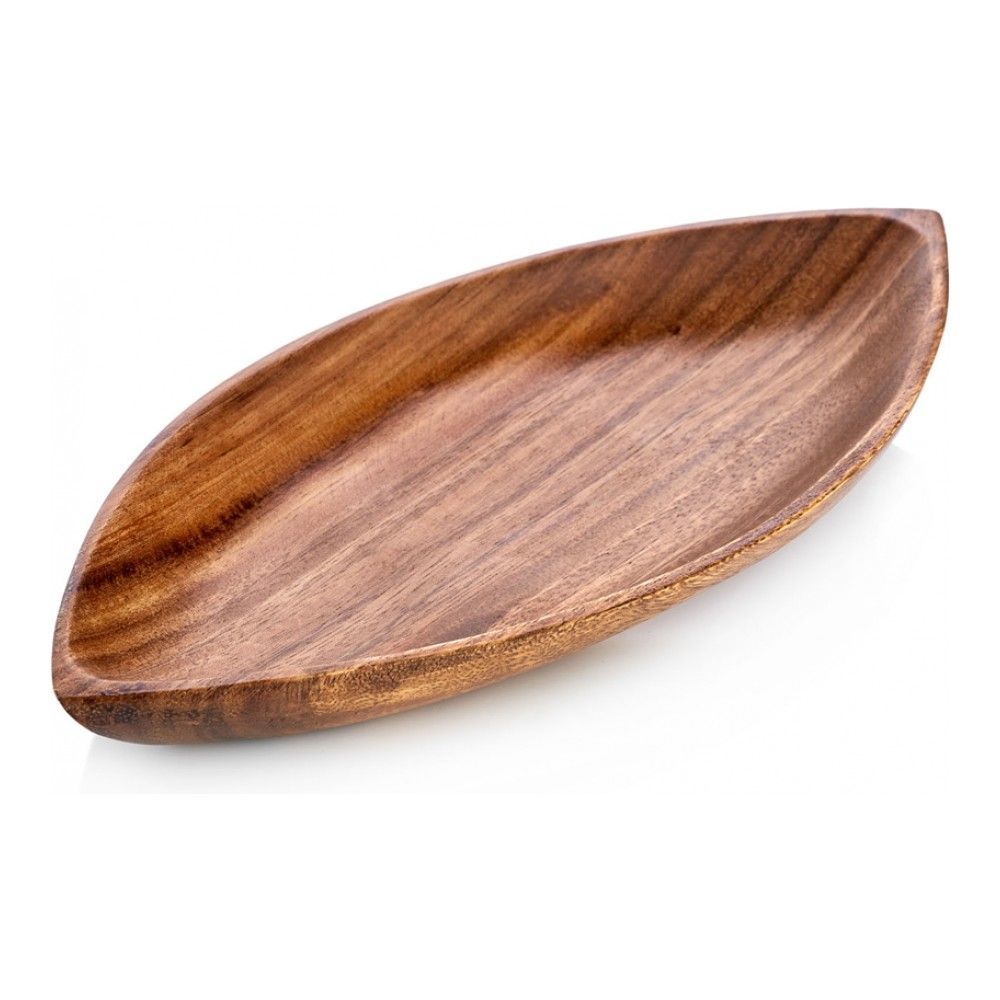 Цвет: коричневый; габариты: 31x16x4 см; вес: 0.40 кг; материал: дерево; серия: Organic. В крайне модном сейчас семействе посуды из дерева прибавление: знаковый британский бренд WALMER представляет кол... Показать описаниелекцию изделий из акации ORGANIC. Тропическая акация (а ORGANIC выполнена из филиппинского дерева) – благородный и яркий материал. Он необычайно прочный, заметно крепче, чем дуб или ясень. Предметы сервировки вырезаны вручную из цельного массива. У древесины очень выразительная текстура: филиппинская акация бывает разных оттенков, от соломенно-светлых до глубоких шоколадных, и имеет шелковистый блеск. ORGANIC – это:. * Экологично;. * Выполнено в единственном экземпляре с изящным рисунком текстуры;. * Крепкий материал, который не трескается и не коробится;. * Эффектно смотрится и в качестве предметов сервировки, и как столовая посуда;. * Безопасно при контакте с пищей: специальное покрытие защищает поверхность;. * Подходит для холодной и горячей еды. Благодаря специальному покрытию, деревянная посуда не впитывает запахи и вы сможете использовать ее для самых неожиданных целей, к примеру, для сухого кошачьего корма или табака для кальяна. В коллекцию входят несколько видов блюд – прямоугольные, овальные, фигурные, квадратные, с ручками, – квадратные и овальные миски разной глубины и диаметра, держатель для бумажного полотенца. Для мытья такой посуды нужно использовать влажную мягкую губку и не оставлять надолго в воде. Не стоит мыть изделия из акации в посудомоечной машине и разогревать в них пищу в микроволновой печи. Заводские наклейки рекомендуем удалять перед первым мытьем. Если наклейка снялась не полностью - остатки клея можно счистить при помощи растительного масла. Это довольно глубокое блюдо с высотой бортиков 4 см. Его можно наполнить закусками разных фактур и вкусов – например, всевозможными видами мясной нарезки, листьями салата, брусочками моркови и т.д.