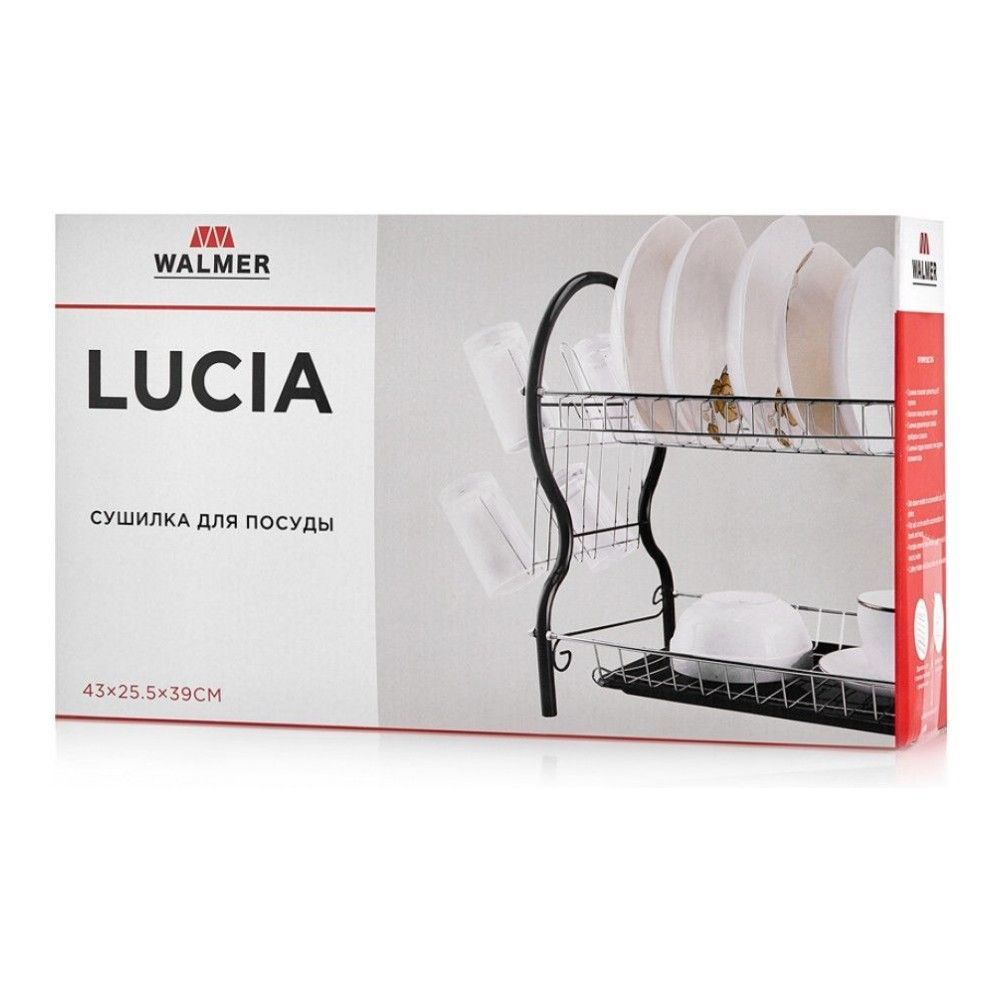 Цвет: черный; габариты: 52x24.5x40 см; вес: 1.16 кг; материал: коррозионностойкая сталь, пластик. Дизайн сушилки для посуды является не менее важной характеристикой, чем функциональные свойства этого ... Показать описаниекухонного аксессуара. Сдержанный дизайн подчеркивает основное назначение сушилки и добавляет интересный акцент в интерьер кухни. Устойчивый стальной каркас обработан специальным порошковым и хромированным покрытием, которое обезопасит сушилку от коррозии и обеспечит высокую износоустойчивость. Удобная и вместительная, она поможет сушить много посуды одновременно. Сушилку можно установить как на крыле мойки, так и на кухонном столе. При желании – спрятать в шкаф. Длина сушилки 41 см, ширина 26 см, высота боковых строек 37 см. Простота в деталях. Стильный дизайн 2-ярусной сушилки органично впишется в интерьер кухни. Кроме того, функциональные и очень удобные дополнения – держатели для сушки столовых приборов и стаканов – помогут экономно использовать пространство. На верхнем ярусе можно легко разместить 18 тарелок, внизу удобно сушить миски и чашки. Держатель для столовых приборов разделен на несколько секций, а подставка для стаканов является съемным элементом. Поддон и держатели легко снимаются. Это обеспечит быстрое и легкое удаление излишков влаги. Особенности и преимущества. * Стильный и функциональный дизайн;. * Приятные дополнения: поддон и держатели для стаканов и столовых приборов;. * Позволяет сушить много посуды одновременно: на верхнем ярусе можно легко разместить 18 тарелок, а на нижнем – миски и чашки;. Съемные элементы обеспечивают легкое удаление лишней воды.