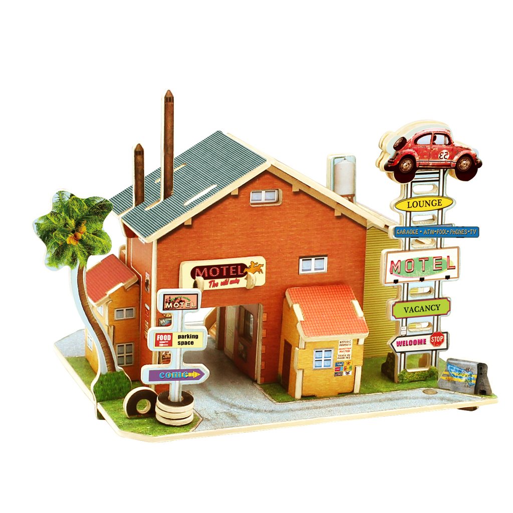 F136 Деревянные 3D пазлы АМЕРИКАНСКАЯ АВТО ГОСТИНИЦА 52 детали ROLIFE (гот.раз. 21x15x15 см. ) 1/30Вопросы по товару