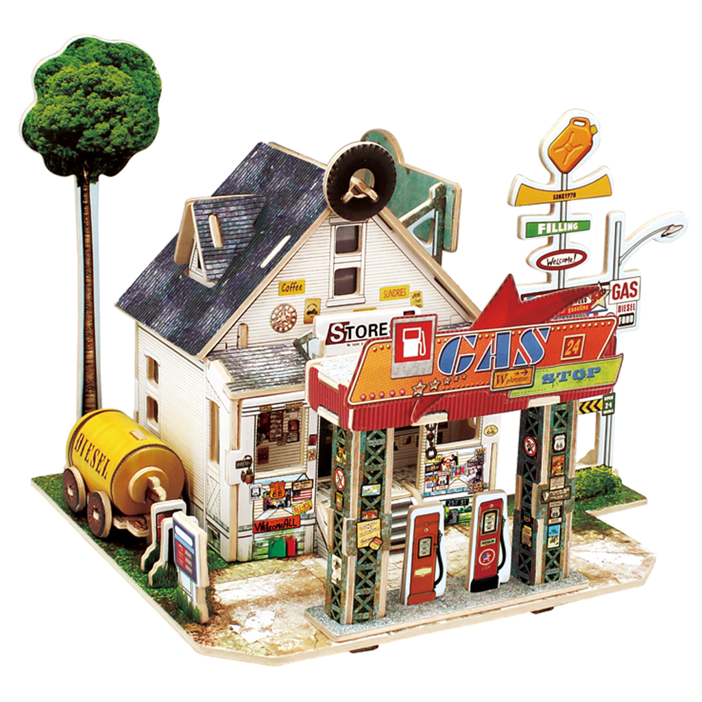 F137 Деревянные 3D пазлы АМЕРИКАНСКАЯ АЗС 57 деталей ROLIFE ( гот. раз. 20,3x17x18,3 см. ) 1/30Вопросы по товару