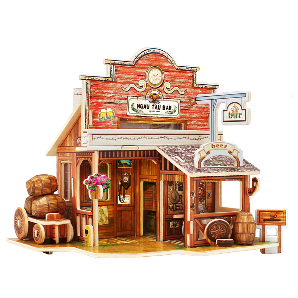 F138 Деревянные 3D пазлы АМЕРИКАНСКИЙ БАР 48 деталей ROLIFE (готовый размер 17,3x13,5x16 см) 1/30Вопросы по товару