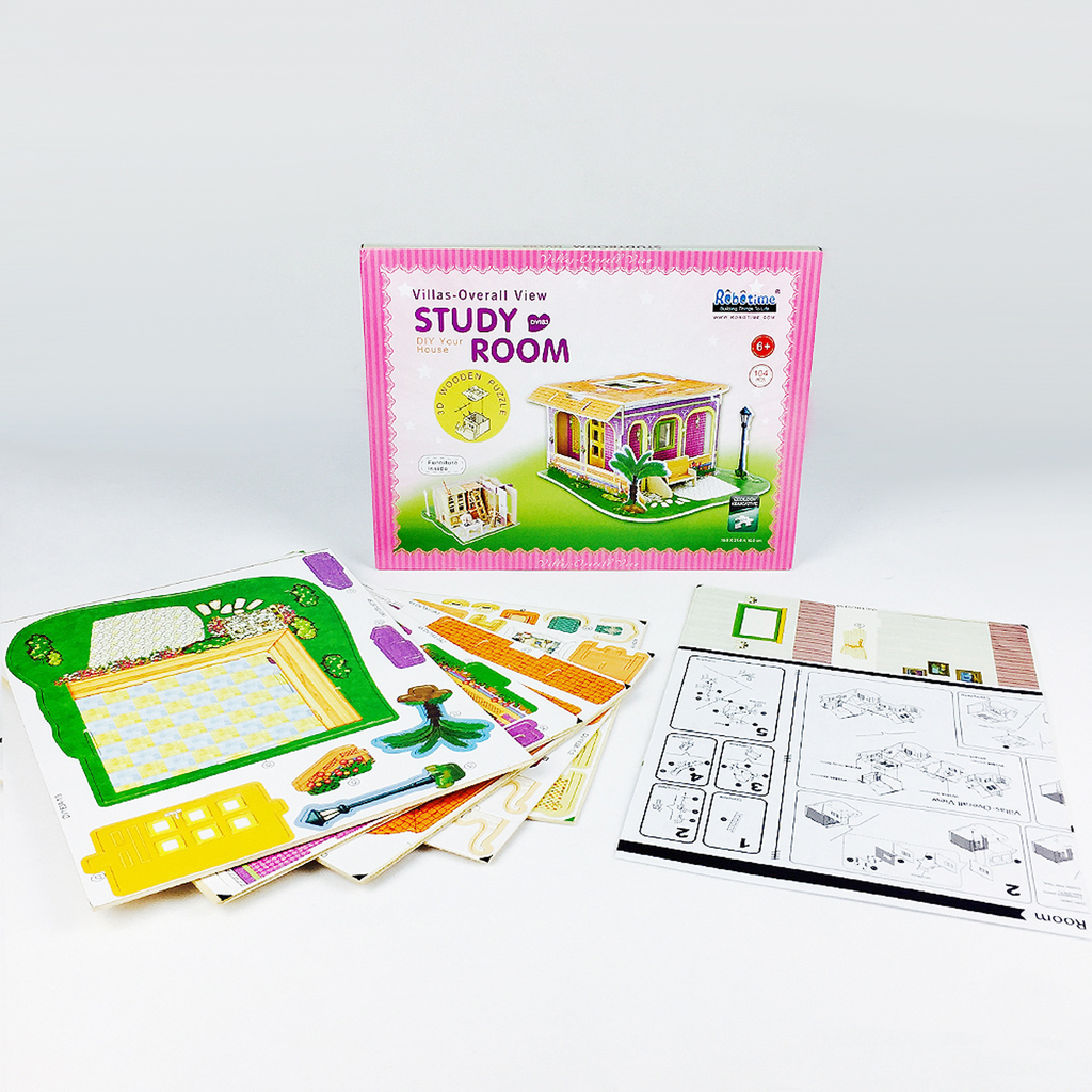 Из деревянных деталей 3Д пазла можно собрать модель кабинета. Все элементы хорошо детализированы: красивые ставни и занавески на окнах; светильники по периметру здания; фонарь и скамейка снаружи. Все ... Показать описаниедетали имеют красочное бумажное покрытие. Соединение происходит без использования клея. Материал: натуральное дерево. Размер после сборки: 20x21x11 см. Размер коробки: 35,5x33x25,5 см Количество деталей: 16 Размер единицы товара: 30,0x22,5x0,3 см В наборе: листы фанеры с деталями 5 шт., инструкция.