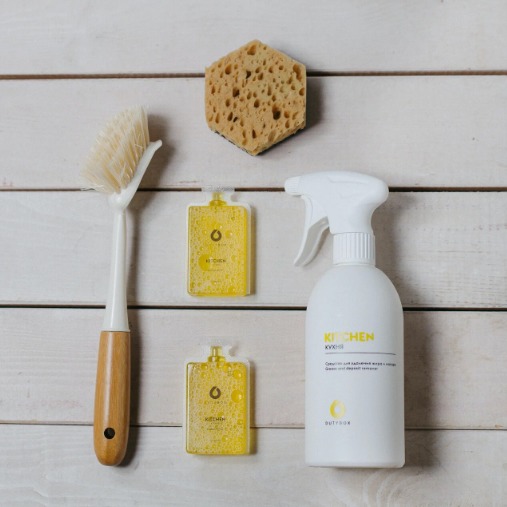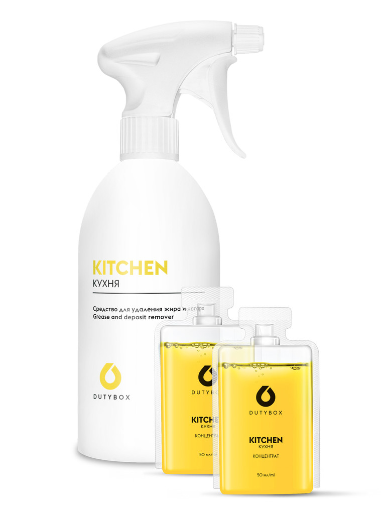 Бутылка с распылителем для разведения +2 капсулы моющего средства серии «Kitchen» Для каменных поверхностей.