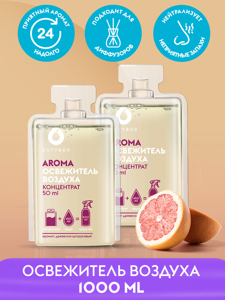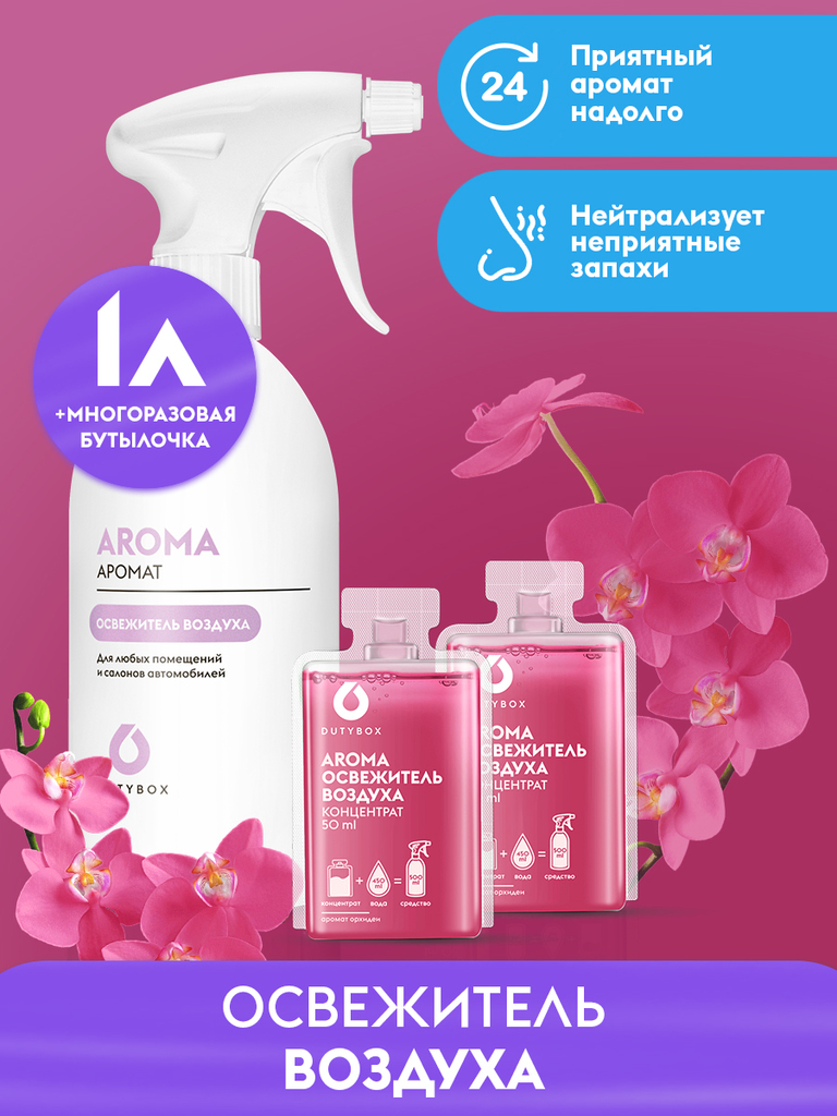 Способ применения: Способ применения: отрежьте ножницами горлышко одной капсулы и смешайте её содержимое с 450 мл тёплой воды в многоразовой ёмкости Dytubox, накрутите распылитель и перемешайте. Назна... Показать описаниечение: Многоразовая бутылка и 2 концентрата. Универсальный освежитель. Эффективно устраняет неприятные запахи и освежает воздух. Подходит для ароматизации воздуха в помещениях различного типа и в автомобиле, не оставляет следов. Безопасен для людей, животных и окружающей среды.