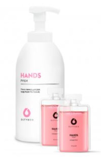 Описание. 2х50 мл концентрат 500 мл ёмкость Две капсулы 50 мл = 0,5 литров готового продукта! Увлажняющее мыло-пенка с бархатной текстурой и нежным ароматом. Обеспечивает деликатный уход за кожей. Бла... Показать описаниегодаря входящим в состав смягчающим компонентам сохраняет защитные функции кожи, не вызывая сухости и раздражения. Специальный пенный дозатор обеспечивает экономичный расход. Состав: ≥30% вода очищенная; ≥5%, но <15% анионные ПАВ, неионногенные ПАВ; <5%: кокогликозид, глицерилолеат, комплексообразователь, лимонная кислота, консервант, ароматизирующая добавка, краситель. Способ применения: -Налить в бутылку для средства Hands 450 мл теплой воды. -Аккуратно отрезать горлышко капсулы. -Вылить содержимое капсулы в бутылку с водой. -Накрутить на горло бутылки пенный дозатор и перемешать. -Готовое средство наносить на руки нажатием на пенный дозатор