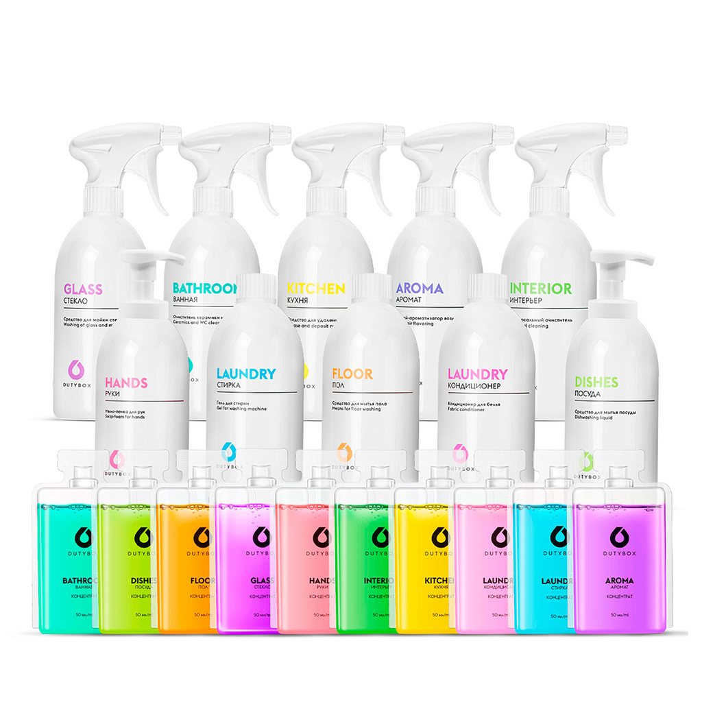 Начинаем с самого простого — с себя! Исключаем образование нового пластика на планете, сохраняя качество уборки. Один набор DutyBox заменяет множество других средств бытовой химии. А бутылочки DutyBox изготовлены из переработанного пластика, который также подлежит переработке.