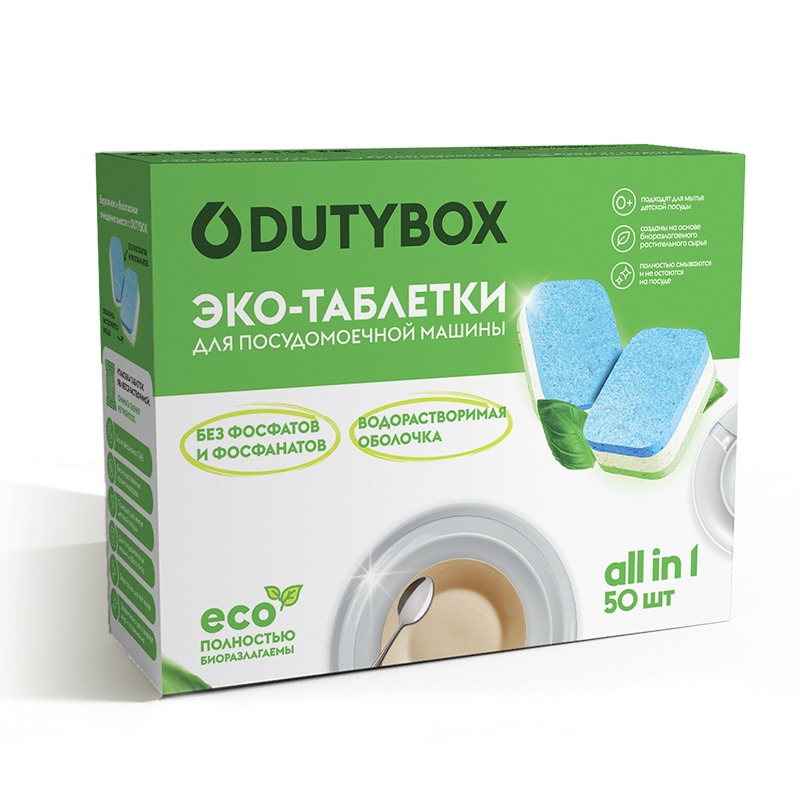 Экологичные таблетки для посудомоечных машин предназначены для бережного и качественного мытья посуды и столовых приборов в посудомоечной машинах любого типа. 50 шт * 20 гр. Водорастворимая оболочка.