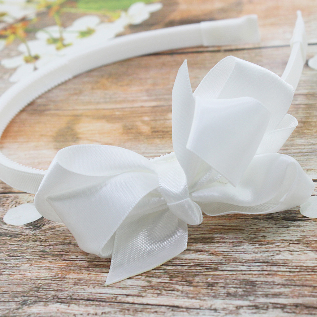 Красивый белый ободок с белым бантом поможет закончит Ваш образ. Надежный, легкий, прочный и удобный сохранит Ваши волосы и прекрасно сформирует и удержит прическу.