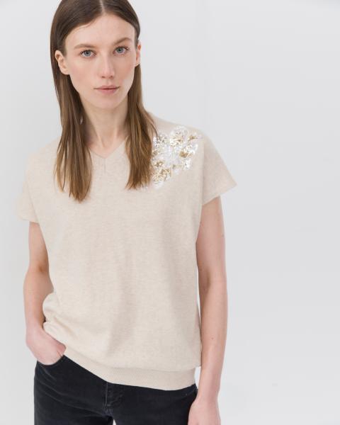 Цветочный декор с пайетками. V-образный вырез горловины Комфортная длина. Материал: 100% хлопок Длина переда от наивысшей точки плеча: 42/44 размеры - 64 см. 46/48 размеры - 66 см. 50/52 размеры - 68,... Показать описание5 см. 54/56 размеры - 71,5 см. 58/60 размеры - 74,5 см О бренде A la Tete. Одежда бренда A la Tete это модный практичный трикотаж для повседневной жизни, комфортные силуэты, эргономичная посадка и широкий размерный ряд. Большое разнообразие пряжи с содержанием натуральных волокон в благородной спокойной цветовой гамме гармонично сочетается с современными силуэтами, люрексом, пайетками, кружевом. A la Tete» в переводе с французского означает во главе». Основная идея бренда состоит в значимости верхнего трикотажа в гардеробе современной женщины. Это практичная и универсальная одежда, с помощью которой можно создать любой образ, от элегантно-романтического до повседневно-спортивного. Кроме того, главным преимуществом верхнего трикотажа является идеальная посадка на любые типы фигур. Каждое изделие бренда органично вписывается в различные модные стили и обогащает гардероб современной женщины.