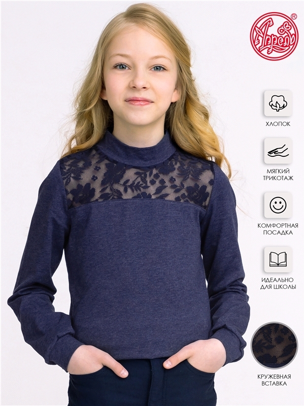 Состав: кулир с лайкрой / хлопок 68% + ПЭ 24% + лайкра 8%. Водолазка выполнена из хлопкового полотна с добавлением лайкры. Изделие полуприлегающего покроя на кокетке из мягкого кипюра, с длинными рука... Показать описаниевами на манжетах. Незаменимый предмет гардероба для школьниц!! Уход: деликатная стирка при температуре 40 градусов, без предварительного замачивания.