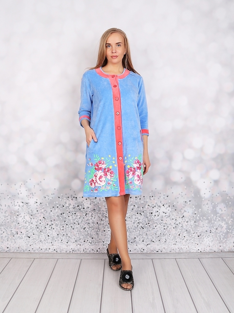 Больше картинок (информации) и таблица размеров на странице. Комплект женский (туника/капри), цвет пудровый, с рисунком. Материал: 100% Хлопок. Пол: женский. Материал: хлопок. Производитель: Узбекистан