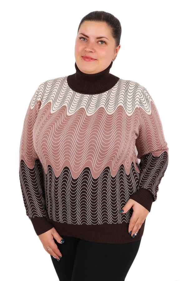 Больше картинок (информации) и таблица размеров на странице. Джемпер для повседневной носки. Мягкий и комфортный, с абстрактным принтом. Цвет-белый/коричневый. Ворот высокий. Выполнено изделие из качественного хлопка (Кулирная гладь (супрем). Большемерит на 1 размер. Материал: 100% хлопок. Пол: женский. Материал: хлопок. Производитель: Китай. Цвет: разноцветный