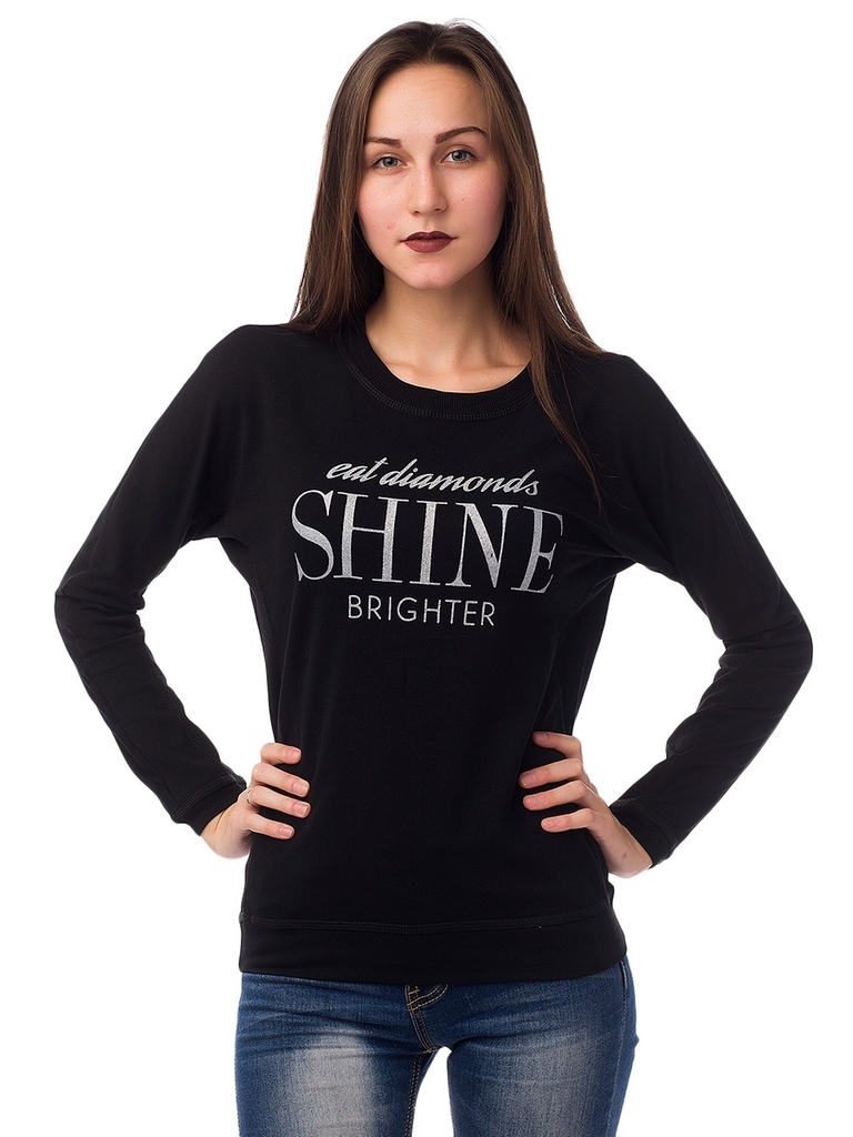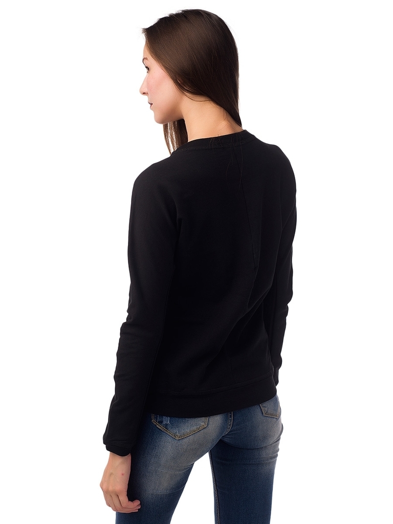 Больше картинок (информации) и таблица размеров на странице. Женский свитшот классического кроя: приталенный силуэт, длинные, облегающие руку рукава с манжетами, круглый вырез горловины. Цвет чёрный. Материал 2-хниточный футер с небольшим добавлением лайкры. На груди свитшот украшен надписью. Оригинальная и в то же время удобная вещь для повседневного гардероба. Легко стирается, хорошо сидит по фигуре. Комбинируется практически со всеми вещами, кроме строгих классических нарядов. Материал: 95% хлопок, 5% ПУ. Пол: женский. Сезон: круглогодичный. Материал: хлопок. Производитель: Узбекистан