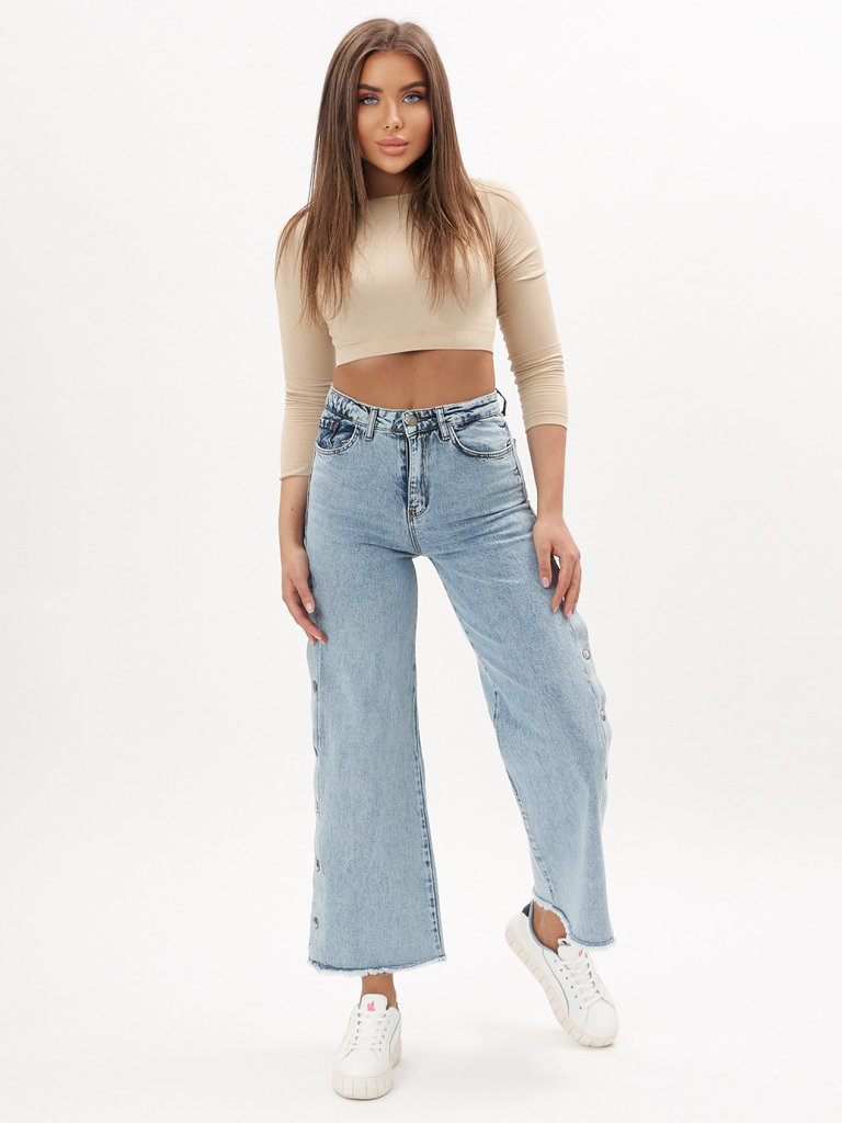 Больше картинок (информации) и таблица размеров на странице. Джинсы клеш на кнопках. Брюки изготовлены из плотного денима, который отлично держит форму и смягчается только в результате носки. Средняя посадка и интересный крой подчеркивают талию. Джинсы однотонные. Удобные боковые втачные и накладные задние карманы. Для большей практичности на поясе есть шлевки для ремня. Особенностью данной модели являются кнопки по бокам штанин. Таким образом эту модель можно использовать и в летнее время года. Джинсы будут прекрасно смотреться с объемными кофтами или футболками, а также массивной обувью или кедами. Современные джинсы практичны и удобны. Джинсы - это самый востребованный элемент в гардеробе милых наших женщин. Материал: Хлопок, Полиэстер, Ткань, Экологичный материалСостав: 97% хлопок, 3% полиэстер. Пол: женский. Сезон: круглогодичный. Производитель: Турция. Цвет: голубой